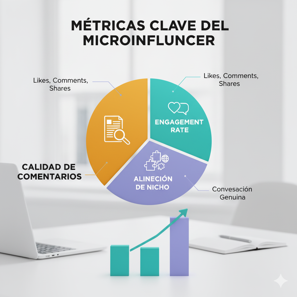 Esta es la relación entre el tamaño de la audiencia y la cantidad de interacciones que recibe el contenido. Un microinfluencer con 10,000 seguidores y un 8% de engagement es infinitamente más valioso que una celebridad con 1,000,000 de seguidores y un 0.5%.